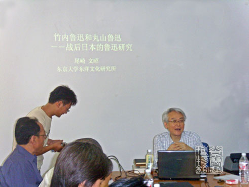 2007年7月29日下午2:30,在清华大学新斋301室,日本东京大学东洋文化研究所研究员、教授尾崎文昭先生做了题为《竹内鲁迅和丸山鲁迅:战后日本的鲁迅研究》的讲座。社科院文学所董炳月研究员主持了此次活动,清华大学中文系汪晖教授做了点评。这是清华东亚文化讲座2007年7月第30讲。北京鲁迅博物馆王得后研究员、社科院文学所孙歌研究员、清华大学中文系王中忱教授、北京大学中文系高远东副教授、清华大学历史系刘晓峰副教授等著名学者出席了本次活动。
