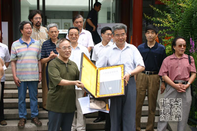 《古都版画》是在上世纪末本世纪初着手创作的一套反映北京名胜古迹的风景画,共计一百幅。这套版画的创作和印制期间,正值北京申奥成功进入筹办阶段,自然就成为我献给北京奥运会的一份礼物。这套版画完成后,于2005年参加了“北京第五届旅游商品设计大赛展览会”并获大会优秀奖,受到各界欢迎与关注。后来在汉煜昭唐(北京)国际文化公司的运作下,作者将此套版画献给北京奥组委,2007年6月,时任北京市市长兼北京奥组委执行主席王岐山认为此画反映了“人文奥运”精神,遂亲自批示作为奥组委首先启用的美术作品。现在这套版画参加“北京奥林匹克文化节”,由文化节组委会、鲁迅博物馆、汉煜昭唐文化公司和水利部展览音像中心共同推出主办了这个展览会,并由鲁迅博物馆举行《古都版画》捐赠仪式,意义绝非一般。鲁迅博物馆是纪念鲁迅先生的圣地。大家都知道鲁迅先生不仅是我国伟大的文学家、新文化的倡导人,同时也是一位美术家,特别是“新兴版画”的创始人、导师?!豆哦及婊纺芄蝗氩赜诠衣逞覆┪锕荨⑹艿奖本┌伦槲娜绱酥厥?,令我这个普普通通的画家感到莫大的荣幸。今天《古都版画》能够受到如此重视,要感谢主办单位的各界领导,感谢孙郁馆长在他刚才的讲话中对本人的褒奖,感谢曾经在《古都版画》的创作与印制中帮助过我的老师们、朋友们,感谢今天前来参加开幕式的朋友们、来宾们。在此,我由衷地表示愿和大家共同为北京奥运会和古都北京做出更多的、有意义的事情!谢谢大家!