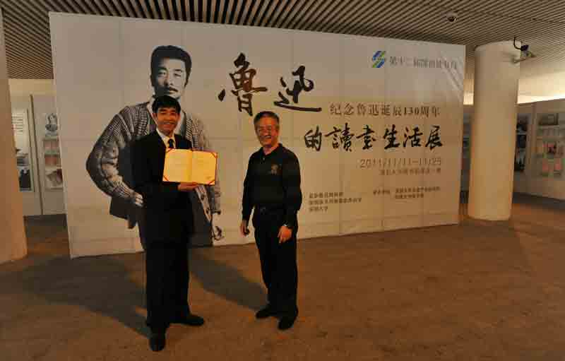 《鲁迅藏外国版画百图》一书被深圳大学图书馆收藏。深圳大学图书馆馆长张道义教授与北京鲁迅博物馆副馆长赵国顺先生在收藏仪式上合影。