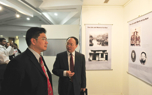 北京鲁迅博物馆的《鲁迅生平展》,作为鲁迅文化周的重要活动之一,也于11月15日在印度国际中心展览厅开幕。印度中国研究所所长阿尔卡·阿查莉亚、尼赫鲁大学中文系教授海孟德和北京鲁迅博物馆副馆长黄乔生共同完成点灯仪式?;魄巧惫莩ぴ诳恢麓侵兴担?ldquo;生活在半殖民地半封建的中国的鲁迅,以强烈的批判精神,深刻的自省意识,为后人留下了丰富的文化遗产。鲁迅善于继承中国文化传统,勇于吸收他国优秀的文化营养,熔铸新机,创造性地推动了中国文化的转化。……中华文化和印度文化既古老又充满新生的活力,都具有博大、深沉的品质。两个文明之间的交流源远流长。公元六世纪,印度的达摩禅师到中国,建立了禅宗教派,影响深远。中国唐代的玄奘,‘西天取经’,远赴印度,取回经书,悉心翻译,为佛教文化成为中华文化有机组成部分做出了巨大贡献。中国在现代化进程中,也出现很多仁人志士,向各国取法,鲁迅就是其中最杰出者之一。他翻译了大量外国著作,被誉为‘现代玄奘’。……今天,亚洲两个相邻大国的人民,正在学习达摩、玄奘、鲁迅等前辈,以旺盛的求知欲、大无畏的精神和坚强的毅力,从事于文化交流。鲁迅是中国现代化道路上的先行者,他的遗产是中国人民继续前进的取之不尽的源泉,也是外国人了解中国近现代历史的一个窗口。我相信,通过这次活动,会有更多的人来研究两国文化交流的历史,探讨深化交流的途径,使两个文明古国、人口大国之间的关系更亲密,更有建设性。”
