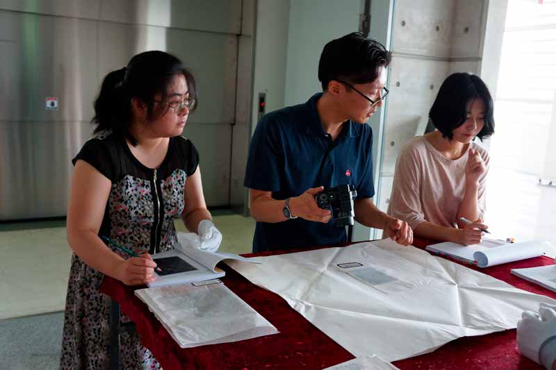2014年8月8日,由财团法人光州双年展主办、北京鲁迅博物馆协办的韩国光州双年展20周年纪念特别企画展“甘露—1980以后”在韩国光州市立美术馆顺利开幕。我馆馆藏的58件珍贵版画作品参加了此次展览。在这58件版画作品中,含鲁迅收藏的新兴木刻作品15幅、胡风收藏的抗战版画作品37幅以及北京鲁迅博物馆近年征集来的抗战版画作品6幅。我馆文物资料保管部夏晓静副主任和馆员常楠参加了展品的点交布展工作和整个展览的开幕式。