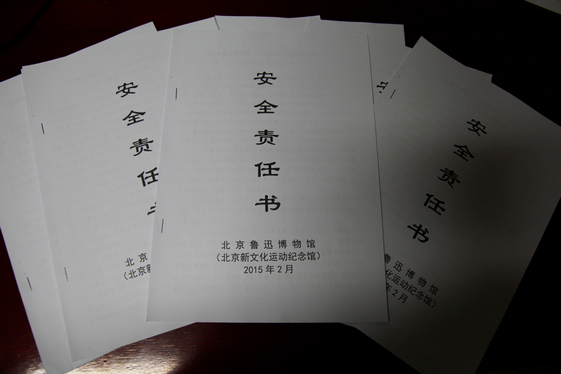 2015年2月6日上午,10日下午,北京鲁迅博物馆(新文化运动纪念馆)在北京鲁迅博物馆多功能厅召开安全工作会议。党委书记、馆长郭俊英分别与9个部门领导及馆内租房单位签订了2015年度安全责任书。何洪副馆长在会上传达了参加地消防安全工作会议有关精神,分析了当前全国和北京市消防安全形势,对做好我馆春节期间消防安全工作提出了要求。会议强调:一是强化安全防火和文物?;そ逃岣咧肮ざ韵腊踩ぷ髦匾缘娜鲜?,自觉遵守各种消防安全规定,规范行为。二是加强消防安全管理,加大检查督促力度,发现问题及时整改。三是狠抓重点工作落实,加强办公场所用电管理,及时排查、及时消除安全隐患,确保安全。各部门主要领导纷纷表示:严格按照各级关于消防安全工作的指示要求,切实抓好各项安全工作,确保春节期间及全年安全无事故,为鲁迅博物馆建设发展做出应有的贡献。