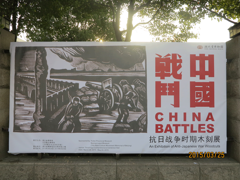 2015年3月24日,由湖北省博物馆、北京鲁迅博物馆(北京新文化运动纪念馆)联合举办的“中国战斗——抗日战争时期木刻展”在湖北省博物馆综合馆正式拉开帷幕。湖北省文物局副局长赵令珍,湖北省博物馆馆长方勤,党委书记、常务副馆长万全文,北京鲁迅博物馆(北京新文化运动纪念馆)常务副馆长黄乔生,原中国艺术研究院研究员、胡风之女张晓风出席了本次展览的开幕式??皇接珊笔〔┪锕莸澄榧恰⒊N窀惫莩ね蛉闹鞒?。