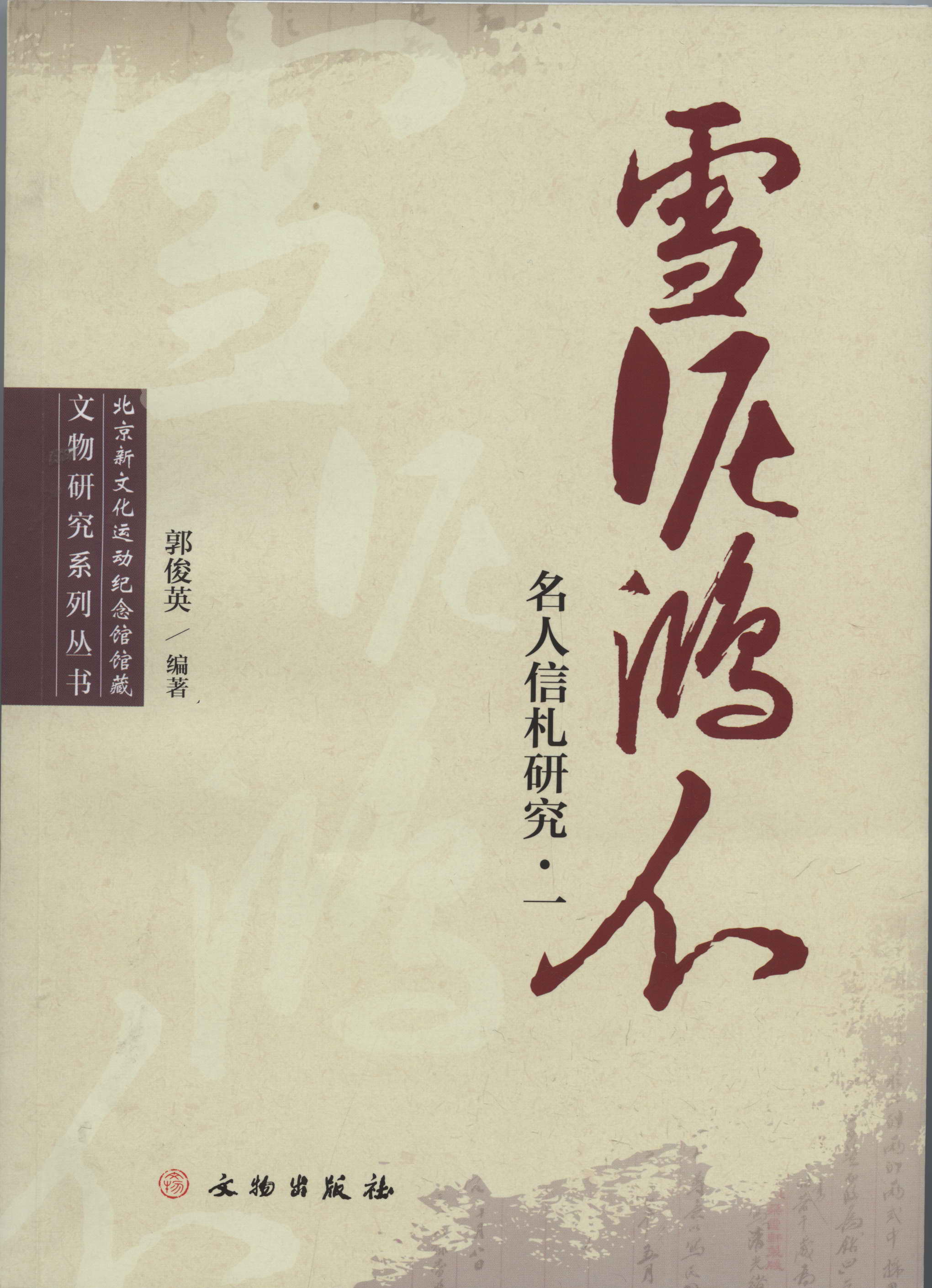 北京鲁迅博物馆(北京新文化运动纪念馆)馆长、研究馆员郭俊英编著的新书《雪泥鸿爪:名人信札研究•一》于2014年7月由文物出版社出版。这部书是北京新文化运动纪念馆馆藏文物研究丛书的第一部。书名引自苏东坡诗作《和子由渑池怀旧》中的诗句:“人生到处知何似?应似飞鸿踏雪泥;泥上偶然留指爪,鸿飞那复计东西。”