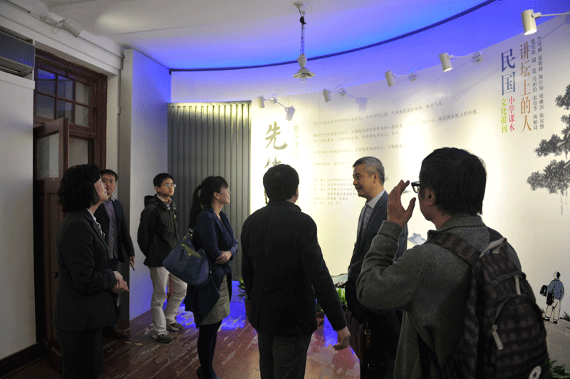 与单纯的图文实物展不同,《先生回来》还特辟三处纪录片和老课本动画片展映空间,这也是主办方和策展人与一般展览者的不同之处。因为率先制作的十集纪录片《先生》首映当日,外延的《先生回来》展览在深圳关山月美术馆首站开幕,辅以中信出版社的《先生》出版和新周刊的《先生》专刊上市,文图影像,物化精神,天南地北,春夏秋冬,回环往复,同兴波澜。多视角、多媒质、多城市凸现,上一站台北红馆的展览也引发轰动。先生们在烽火连天的战乱里守拙、在大江大海的南渡北归里伫立,宛如灯塔,各自照亮一方山河。而在《先生》纪录片广为播出,《先生回来》展落地红楼之际,深圳越众影视公司联合中国教育电视台,携手台湾非也影视公司,于开幕仪式上,同时发布《先生II》十集纪录片开机。后续的十位先生,在历经海峡大波涛、人世大跌宕后,依然光耀世代:于右任、王云五、林语堂、梁实秋、傅斯年、钱穆、鲁迅、司徒雷登、丰子恺、张季鸾等,先生气场气息,高山仰止,流水不竭??皇缴希徘傺葑嗉依钕轹壬嘈μ瞥徘?ldquo;九霄环佩”现场出席,演奏两首古乐《流水》和《忆故人》,更有一首当场编写吟唱的《先生回来》,启动展厅大幕。