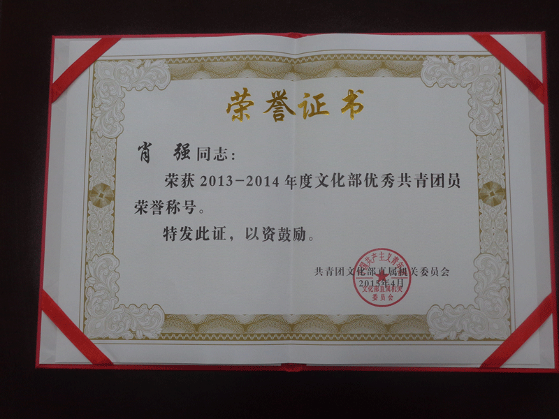 喜讯—肖强同志荣获“2013—2014年度文化部优秀共