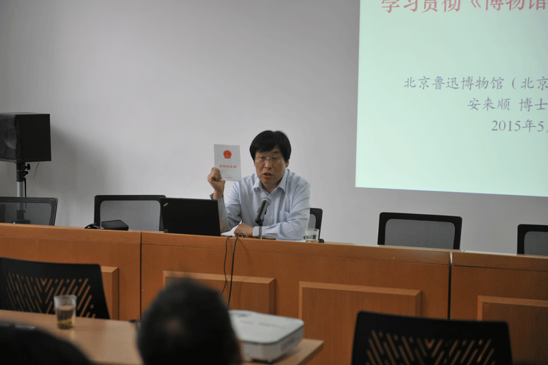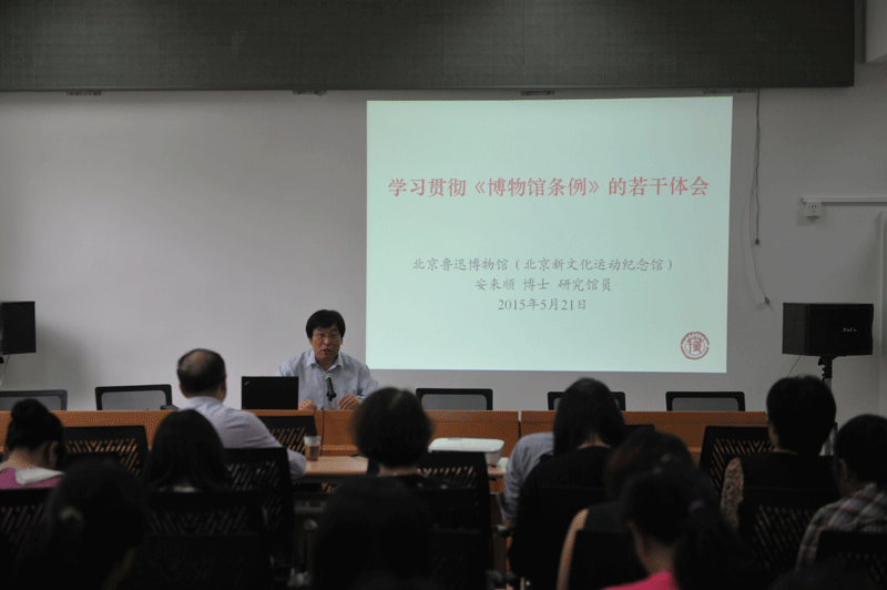 2015年5月21日下午,北京鲁迅博物馆(北京新文化运动纪念馆)举办业务培训,副馆长、中国博物馆协会副理事长兼秘书长安来顺研究馆员作了题为《学习贯彻《博物馆条例》的若干体会》的授课。此次业务培训由黄乔生常务副馆长主持。
