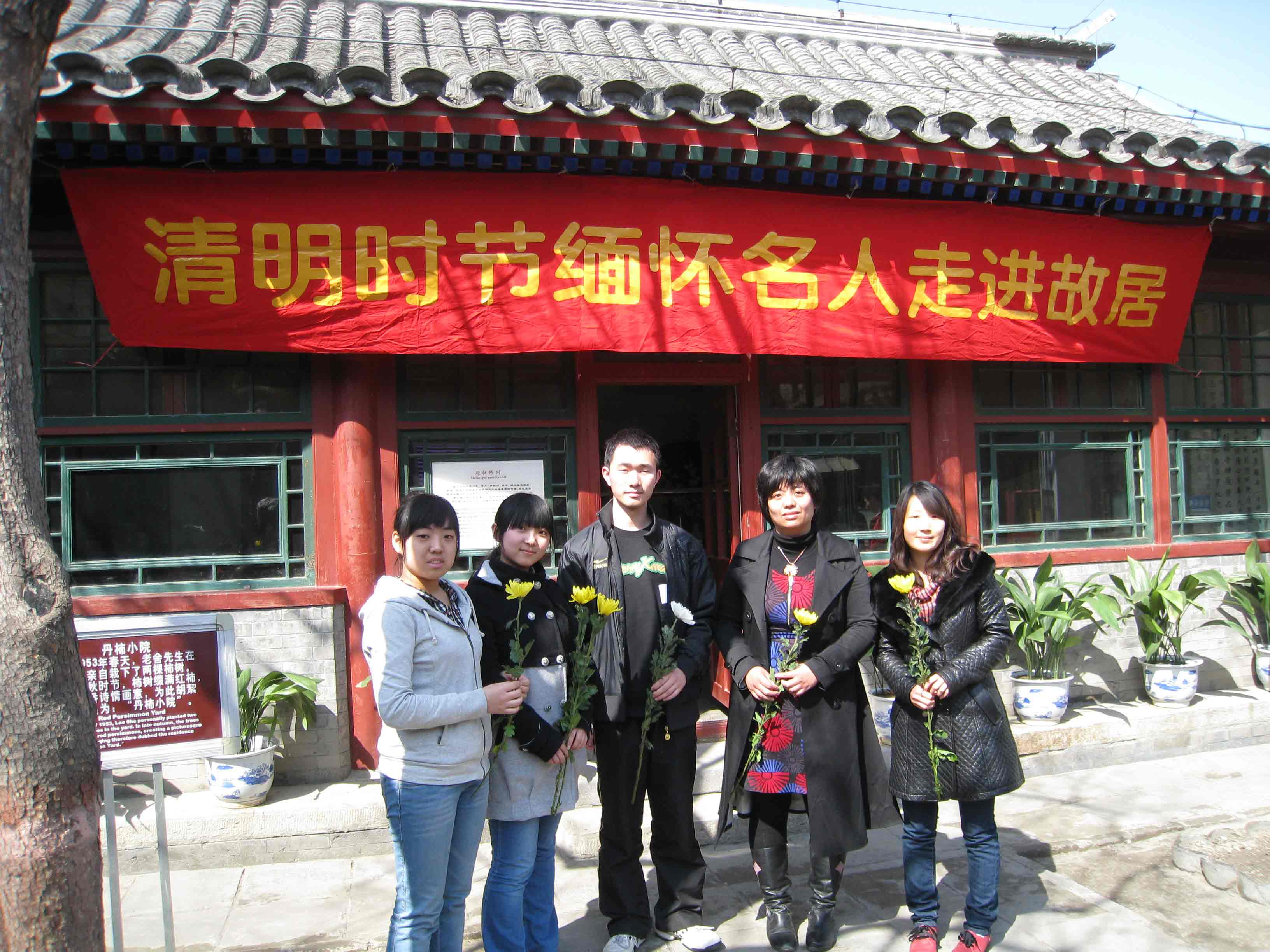 4月2日,清明节前夕,八家名人故居纪念馆(北京鲁迅博物馆、宋庆龄故居、李大钊故居、郭沫若纪念馆、茅盾故居、老舍纪念馆、徐悲鸿纪念馆、梅兰芳纪念馆)在老舍纪念馆共同举办了主题为“缅怀名人走进故居”的清明节纪念活动,出席活动的有名人之后、专家学者以及博物馆志愿者等。活动以向八位名人敬献鲜花,学生们诵读名人作品,与会者座谈等多种形式追忆先贤,院内大屏幕持续滚动播放八家相关影像宣传片?;疃玫搅吮本┦形俊⒈本┦形奈锞值拇罅χС?。