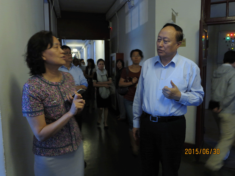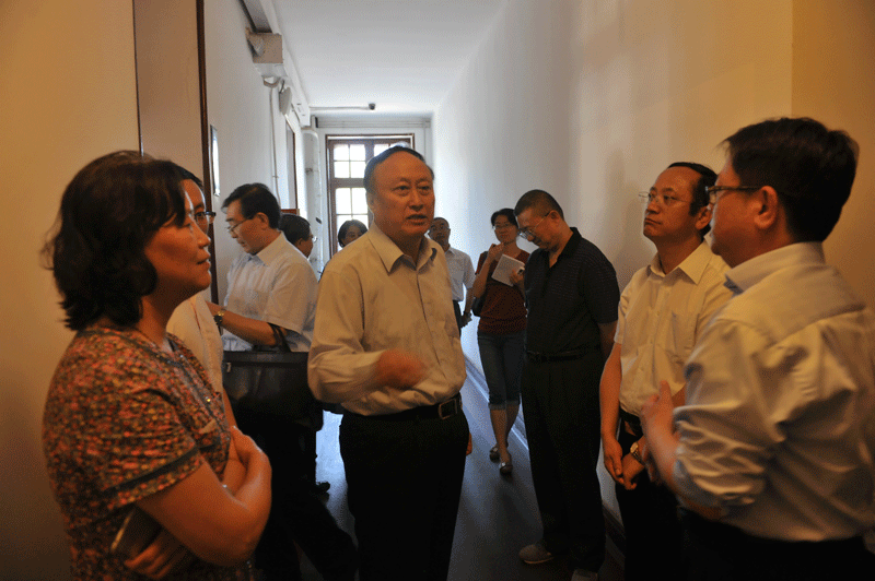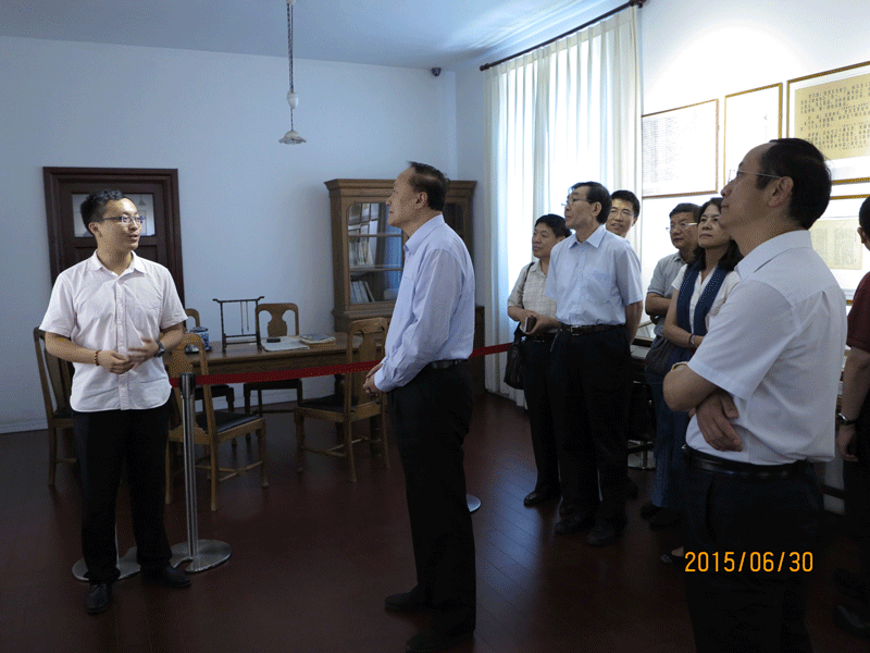为扎实开展“三严三实”专题教育活动,2015年6月30日下午,北京大学党委书记朱善璐带领党委中心组成员及相关工作人员30余人一行,来到位于五四大街29号的北京新文化运动纪念馆(北大红楼旧址)进行参观学习。党委中心组成员先后参观了李大钊办公室、毛泽东工作过的第二阅览室及蔡元培、陈独秀专题陈列,在红楼三层会议室作了题为“加强党性修养,坚定理想信念”专题辅导报告。国家文物局党组成员、副局长顾玉才,国家文物局直属机关党委副书记王莉,北京鲁迅博物馆(北京新文化运动纪念馆)党委书记、馆长郭俊英等同志陪同参观展览,与北京大学党委中心组部分成员进行了交流。