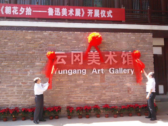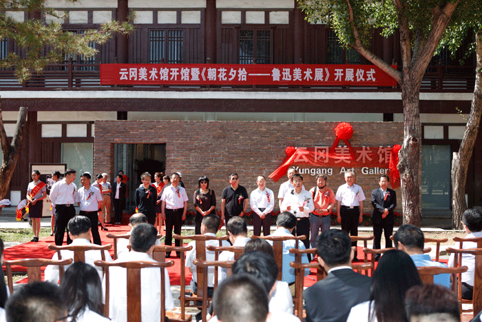 为纪念鲁迅诞辰135周年、逝世80周年,6月15日,由北京鲁迅博物馆(北京新文化运动纪念馆)与云冈石窟研究院共同举办的“朝花夕拾——鲁迅的美术世界”展览,在山西大同云冈石窟研究院云冈美术馆开幕。大同市委副书记刘国庆,市委常委、宣传部长马斌,市委常委、市纪委书记卫洪平,北京鲁迅博物馆(北京新文化运动纪念馆)常务副馆长黄乔生,中国小说学会副会长、茅盾文学奖评委、鲁迅文学奖评委王春林,鲁迅文学奖获得者李俊虎、葛水平、王祥夫,以及大同市各有关部门领导参加开幕仪式。开幕式由云冈石窟研究院、云冈旅游区管理委员会党委书记王雁翔同志主持,石窟研究院院长、云冈旅游区管理委员会主任张焯,北京鲁迅博物馆(北京新文化运动纪念馆)常务副馆长黄乔生、鲁迅文学奖获得者代表王祥夫和大同市委常委、副书记刘国庆在开幕式上先后致辞,对云冈石窟研究院云冈美术馆开馆并举办专题展览表示热烈祝贺??皇浇崾?,与会领导和观众饶有兴趣地参观了展览,随后举办了“纪念鲁迅鲁迅诞辰135周年暨逝世80周年”座谈会。下午,举办了《鲁迅的美术世界》、《鲁迅是谁》、《黑塞小说的魔力》等讲座。