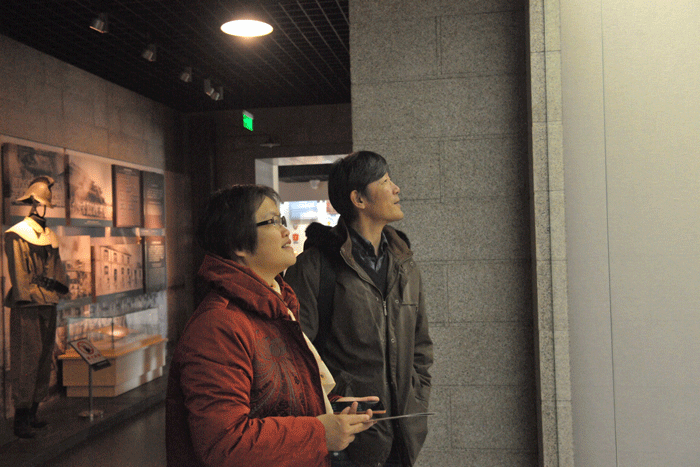 观众认真听讲解员讲解
