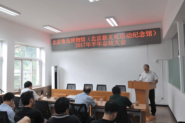 8月1日下午,北京鲁迅博物馆(北京新文化运动纪念馆)召开2017年半年总结大会?;嵋橛傻澄榧抢钣瓮局鞒?,常务副馆长黄乔生、副馆长安来顺、党委副书记李战崎和全体职工参加了大会,各部门主要负责人以PPT的形式汇报了本部门上半年完成的主要工作及下半年工作。各分管馆领导对所分管的部门工作情况依次进行了点评。