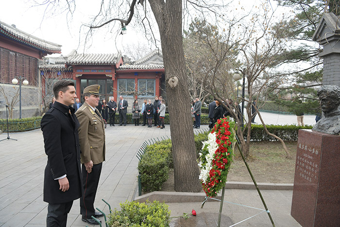 3月14日下午,匈牙利驻华大使白思谛、大使馆副馆长苏昕薇,以及在京的外交官员一行到北京鲁迅博物馆区举行向裴多菲铜像献花仪式;3月17日下午,北京匈牙利文化中心在北京鲁迅博物馆区举办“遇见裴多菲”相关纪念活动,邀请北京外国语大学、北京第二外国语学院、天津外国语大学学生以及观众近百人参与其中?;疃觳史壮?,包括:制作匈牙利徽章、诗歌朗诵比赛、“塔罗高拓”民乐演奏会、电影放映《金克森姆》等,并吸引了来我馆参观的观众欣赏。