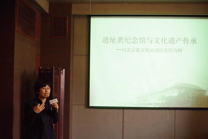 青年学者们围绕2018年“国际古迹遗址日”的主题“遗产事业,继往开来”,结合自己的研究与实践做了主题发言,我馆秦素银以新文化运动纪念馆为样本,以展陈的设计和表达为线索,讲述了在红楼这样的静态遗产中,如何用陈列说话,赢得与会观众的情感共鸣。