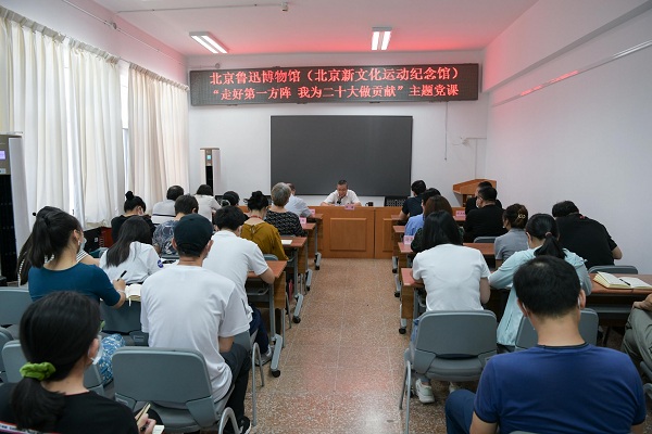 根据国家文物局直属机关党委《关于组织开展“七一”系列活动的通知》要求,7月15日,北京鲁迅博物馆(北京新文化运动纪念馆)党委组织开展“走好第一方阵 我为二十大做贡献”主题党课活动。党委书记李游同志以“赓续百年初心 传承红色基因,紧紧围绕提升核心业务能力建设推进博物馆改革发展”为题,为全馆党员干部、入党积极分子、青年团员共40余人上了一堂“走好第一方阵 我为二十大做贡献”专题党课。