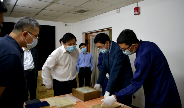 5月30日上午,学习贯彻习近平新时代中国特色社会主义思想主题教育中央第十九指导组组长巴音朝鲁带队一行来我馆开展调研座谈,指导组副组长张季,国家文物局党组成员、副局长解冰,直属机关党委常务副书记、人事司司长朱晓东,中央第十九指导组成员,馆党委领导班子成员及各部门主要负责同志参加调研座谈。