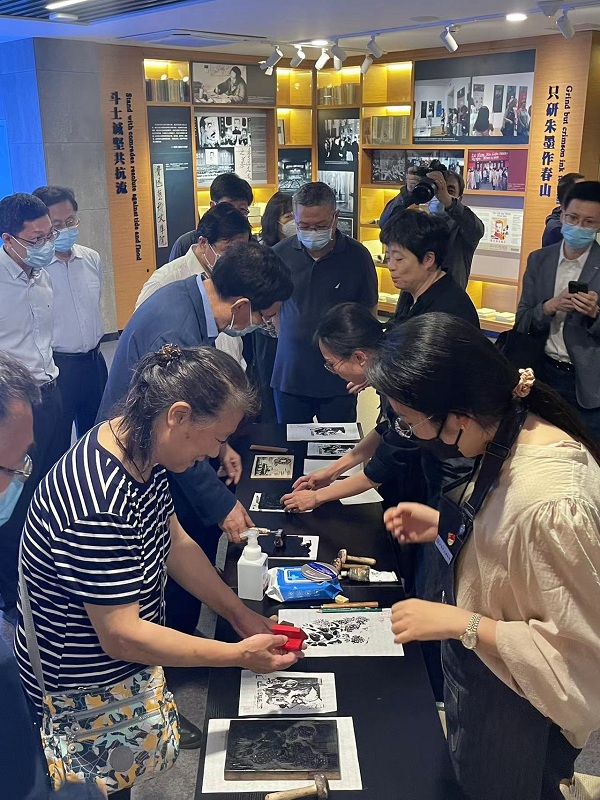 指导组一行参观调研了鲁迅生平陈列展览、鲁迅旧居和馆藏文物?;だ玫?,调研体验了木刻版画拓印社会教育活动。在随后召开的座谈会上,党委书记李游同志从坚持政治引领,高标准高质量推进主题教育;强化理论武装,坚持读原著学原文悟原理;注重学用转化,积极主动为主题教育搭建平台展现风采等三个方面汇报了我馆学习贯彻习近平新时代中国特色社会主义思想主题教育开展情况,3名党员代表针对馆党委主题教育开展情况、个人学习体会以及结合博物馆事业改革发展、干部人才队伍建设、陈列展览展示和文物资料?;だ玫确矫娼辛私涣鞣⒀?。