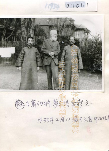 照片名称:与萧伯纳、蔡元培合影之一