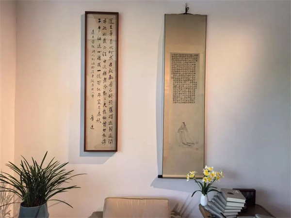 复原王瑶先生客厅和客厅悬挂的两幅字画照