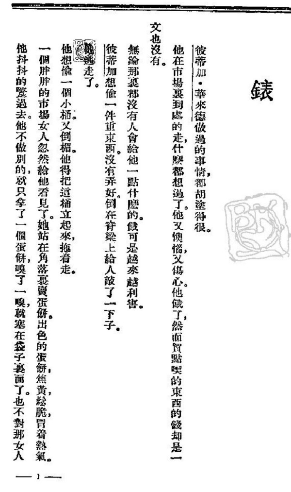 今天为《译文》看了几篇小说(中略)现在选定了一篇,在有聊与无聊之间,事情是“洋主仆恋爱”(中略)作者是Rumania的M. Sadoveanu(中略)明天当动手来译,约有一万字左右,在以前,必可寄出。[49]